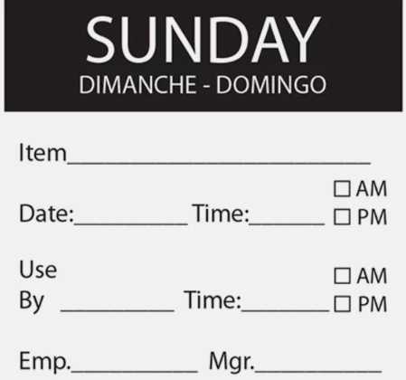 x250 SUNDAY DAY OF WEEK USE BY LABEL